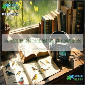 Mobile apps like Merlin Bird ID and BirdNET can instantly recognize bird sounds in real-time, while field guides provide detailed recordings and visual references to strengthen your identification skills, using tools like BirdNET.