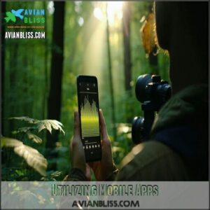 - You can use smartphone apps like Merlin Bird ID and BirdNET for real-time identification with visual spectrograms that match sounds to species, achieving up to 91% accuracy even in noisy environments.