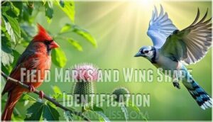 Beyond beak features, you’ll want to master field marks and wing shape identification for accurate bird identification.