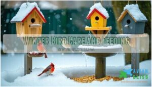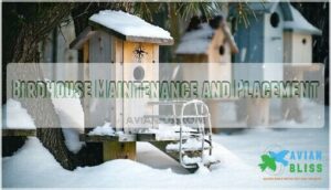 You need to keep birdhouses clean, sturdy, and well-insulated to guarantee birds stay healthy and safe during winter.