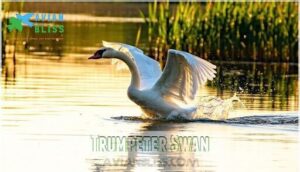 Across Colorado’s pristine waterways, you’ll encounter North America’s heaviest waterfowl—the magnificent Trumpeter Swan. These colorado bird species reach up to 25 pounds with six-foot wingspans, making them true giants among large waterbirds.