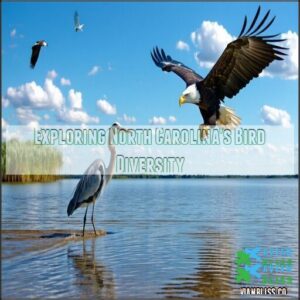 You’ll find North Carolina’s skies filled with an impressive array of large birds, from majestic eagles with 8-foot wingspans to great blue herons stalking the shorelines.