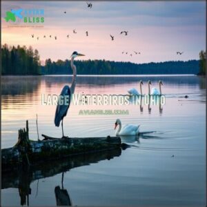 Often, near Ohio’s lakes, you’ll spot large waterbirds. These aquatic birds thrive in unique waterbird habitats.
