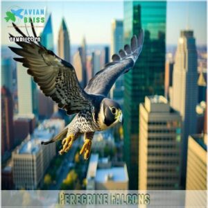 These birds of prey thrive in urban nesting sites, using aerial hunting to catch prey mid-flight.