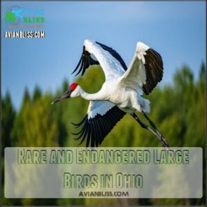 Your actions can help rare birds thrive, ensuring a brighter future outlook for these magnificent creatures. By contributing to Ohio bird conservation, you’re giving large birds in Ohio a chance to survive, and that’s a pretty big deal for their legal protection. This is a significant step towards conservation efforts.