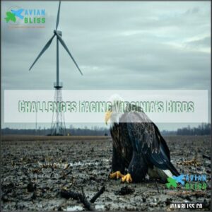 While pesticides threaten birds, wind turbines present another challenge for Virginia’s large avian species. These rotating blades can be deadly obstacles, especially for eagles, hawks, and migrating birds.