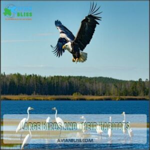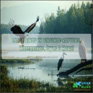 - You’ll find impressive large birds across Virginia’s diverse landscapes, from Bald Eagles with 6-7 foot wingspans in coastal areas to Great Horned Owls hunting silently in forests at night.