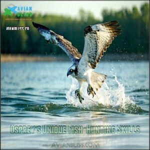 Switching from wading to water-loving hunters, the Osprey stands out as an expert angler. Known for its stunning aerial acrobatics, this bird uses impeccable vision to spot fish from staggering heights before a breathtaking plunge. Its talons are uniquely adapted, with reversible outer toes—perfect for gripping slippery prey.