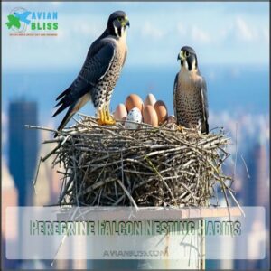 Peregrine Falcons use various nesting materials and establish secure spots to lay their eggs. During egg incubation, both parents take turns, ensuring the future of their falcon chicks.
