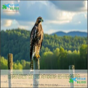 Virginia’s common species include Red-tailed, Cooper’s, and Sharp-shinned hawks.