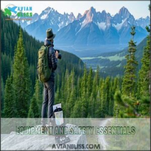 Navigation tools and hiking gear guarantee trail safety, while wildlife awareness keeps encounters peaceful. Always carry first aid supplies.