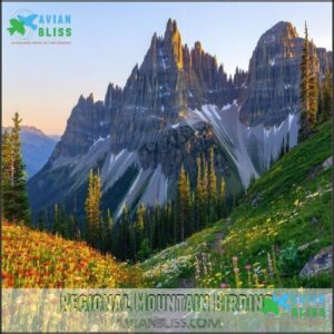 You’ll find regional mountain birding spots teeming with unique species and diverse habitats perfect for exploring.