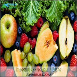Leafy vegetables like kale and spinach provide essential vitamin sources and mineral content. Safe vegetables include chopped carrots, peas, and cucumber.