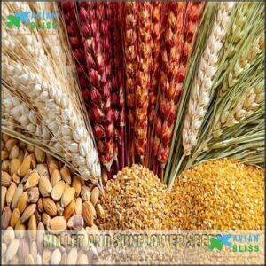 Millet and sunflower seeds form the cornerstone of quality pigeon food.