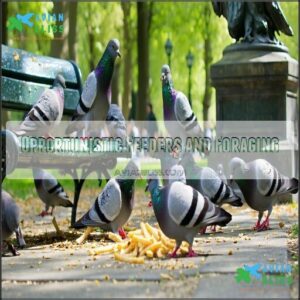 However, they’re also opportunistic feeders with remarkable dietary adaptations. In urban environments, you’ll notice pigeons: