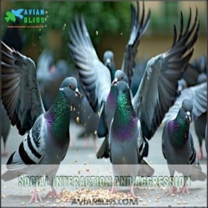Urban pigeons display aggression when their personal space is invaded, especially during feeding.