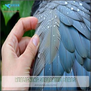 Keeping feather barbs aligned is vital for maintaining a bird’s sleek, aerodynamic design. When barbules separate, you can easily restore the feather’s structure using simple preening techniques.