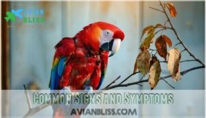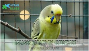• You can spot vitamin A deficiency early by watching for runny nose, swollen eyes, poor feather condition, and breathing trouble – symptoms that affect 80-90% of pet birds on inadequate diets.