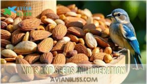 Nuts and seeds offer excellent calcium sources for birds, but moderation matters due to high seed fat content.