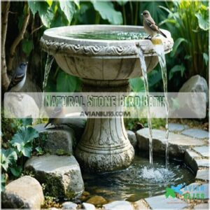 You’ll love how a natural stone bird bath effortlessly combines beauty and function in your garden.