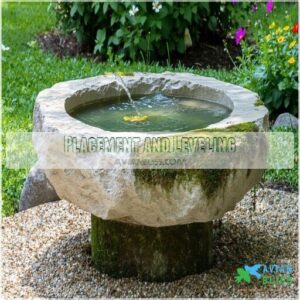Secure ground stability by removing debris during surface prep. Shim usage keeps your stone bird bath steady, blending natural charm with proper leveling techniques for lasting enjoyment.