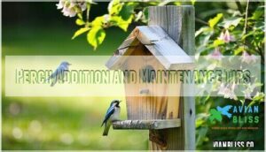 Adding perches to your bird houses offers perch benefits like easier entry for smaller birds, though many species prefer perch-free designs.