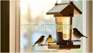 These natural wood feeders attach directly to glass surfaces using suction cups or mounting brackets. You’ll enjoy close-up views while birds feel secure feeding near your home.
