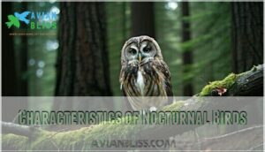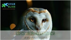 These feathered night shift workers have mastered the art of darkness through remarkable Sensory Adaptations. You’ll discover their Nighttime Communication involves complex calls that carry across miles, helping them establish territories and find mates. Their Sleep Patterns flip our world upside down—they’re most alert when you’re winding down for bed.