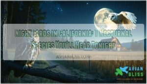 You’ll find various night birds in California, including owls, nightjars, and mockingbirds, each with unique characteristics and habits, contributing to the state’s diverse avifauna and ecosystem.