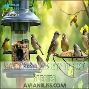 - Attracts a wide variety of birds like cardinals, finches, and nuthatches.