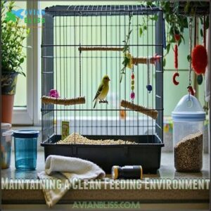 You’ll need to maintain proper feeder hygiene to keep your feathered friends healthy and your home tidy.
