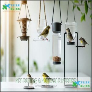 For ideal placement, select spots you can easily access for refilling. Consider feeder mounting options to guarantee stability.