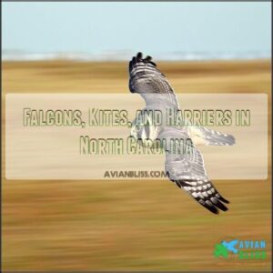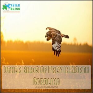 • You’ll find over 20 species of birds of prey in North Carolina, including Bald Eagles, Peregrine Falcons, and Red-tailed Hawks, each thriving in diverse habitats.