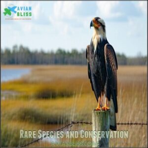 You’ll find numerous bird conservation efforts throughout the state, from reducing pesticides in agricultural areas to protecting nesting sites. Legal protection under federal laws has helped species like the Peregrine Falcon recover from near extinction. Protected areas now safeguard habitats.