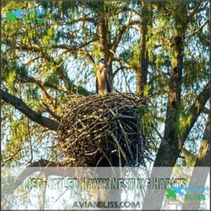 You’ll find their massive nests—sometimes weighing over 1,000 pounds—built from sticks and lined with softer materials.