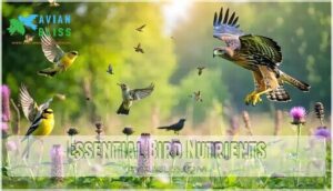 You’ll discover the essential nutrients that keep wild birds thriving, from the critical proteins that build strong muscles to the energy-packed fats that fuel their daily adventures.