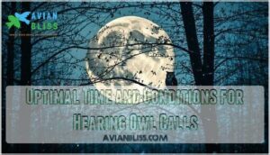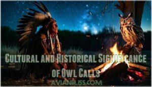 These cultural interpretations transform simple biological communication into something deeper—owl folklore that connects you to generations of human fascination with these enigmatic nocturnal creatures and their evocative sounds.