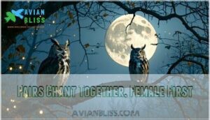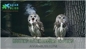 Their coordinated owl calls demonstrate sophisticated vocal teamwork essential for successful breeding seasons, highlighting the importance of owl communication and pair bonds in their mating rituals.