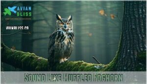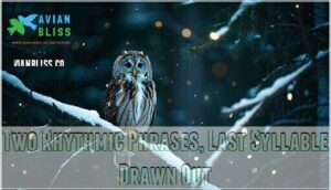 Barred Owl calls feature distinct rhythmic patterns you’ll recognize instantly. These ohio owls produce two clear phrases with dramatically drawn-out final syllables, creating memorable owl vocalizations.