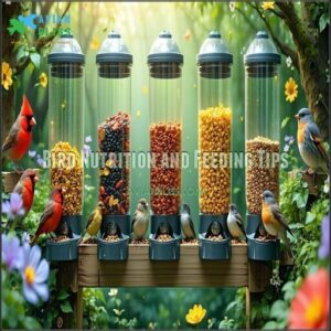 You’ll attract a more vibrant backyard community by customizing seed mixes for specific bird species. Different birds have unique dietary needs that change with the seasons.