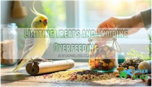 Remember: portion control prevents obesity while still allowing your bird enjoyable variety in their cockatiel diet plan, ensuring a healthy lifestyle.