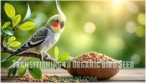 You’ll need to switch your feathered friend to organic seed gradually, mixing small amounts with their current food until they’re ready for the full swap.