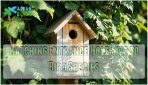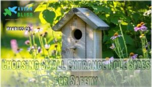 Beyond avoiding risky locations, your entrance hole size acts as nature’s bouncer. Think of it as your bird house safety checkpoint that controls who gets inside.