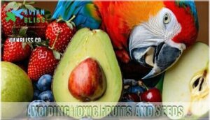 Avoid seed-heavy diets—they’re like junk food that causes obesity and vitamin deficiencies, which can be detrimental to your parrot’s health due to the lack of balanced nutrition.