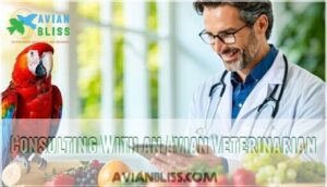 Think of your vet as your parrot’s personal nutritionist—they can help you create a meal plan that keeps your bird healthy and prevents you from accidentally turning into the helicopter parent of the bird world, which can be detrimental to your parrot’s well-being due to excessive and unnecessary intervention, making the vet’s guidance on a meal plan crucial.
