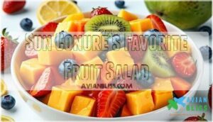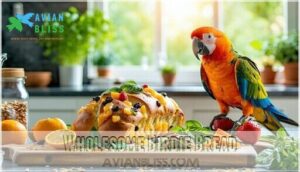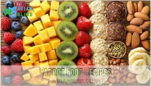 - You’ll need to avoid toxic ingredients like avocado, chocolate, onions, and garlic while focusing on safe foods like fresh fruits, colorful vegetables, cooked grains, and unsalted nuts to keep your parrot healthy and happy.