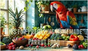 You’ll transform your kitchen into a parrot paradise when you master these essential prep techniques that’ll make your feathered friend think you’re the world’s best chef.