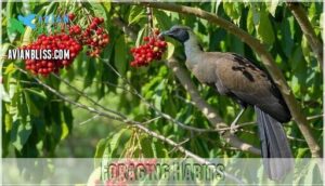 Chachalacas employ specialized foraging techniques that make them unique among game birds.