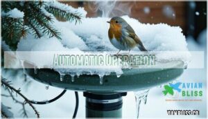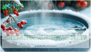 - You’ll want to choose heaters with thermostatically controlled systems that automatically activate when temperatures drop, consuming only 50-75 watts while keeping water unfrozen down to -20°F.