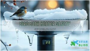 You’ll find heated bird baths completely safe when they’re thermostatically controlled and maintain water temperatures between 50-70°F, preventing both freezing and overheating risks.